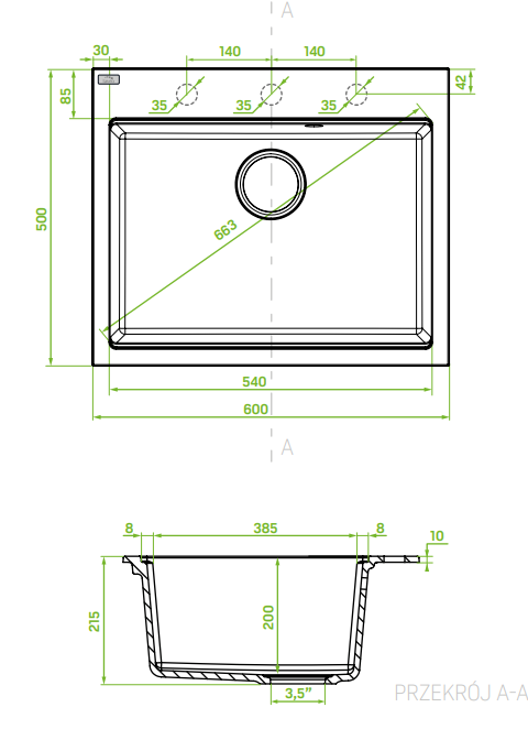 | Speciale eigenschap spoelbak | Met kraangatbank |