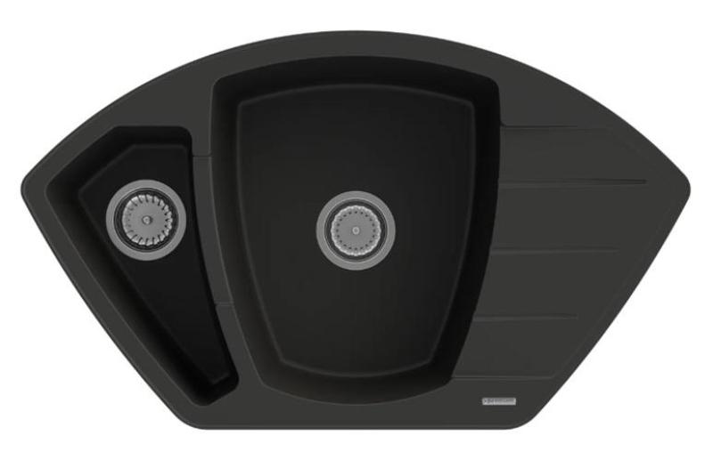 Graniteland Monte Granieten zwarte Hoekspoelbak opbouw 901x538mm met RVS Plug 1208971413