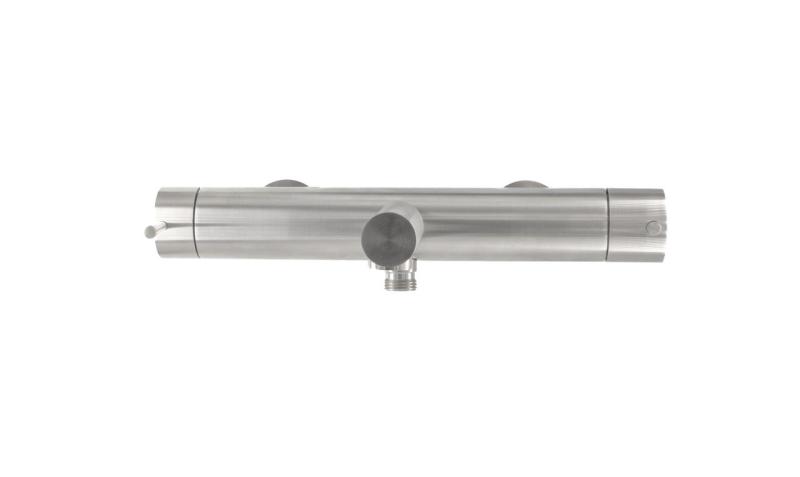 De badthermostaat is vervaardigd uit hoogwaardig messing en afgewerkt met een duurzame verchroomde coating. Dit garandeert een lange levensduur, uitstekende corrosiebestendigheid en een luxe uitstraling. Dankzij het thermostatische binnenwerk blijft de ingestelde temperatuur stabiel, zelfs bij schommelingen in waterdruk.