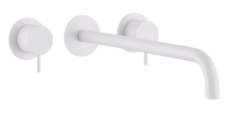 Waterevolution Flow 3-gats Inbouw Wastafelkraan Mat Wit met uitloop 21 cm T1163FBR-21